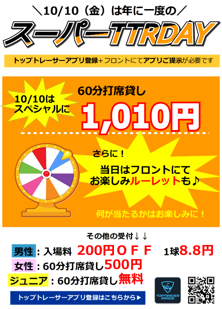 10/10(金)は年に一度のスーパートップトレーサーDAY!